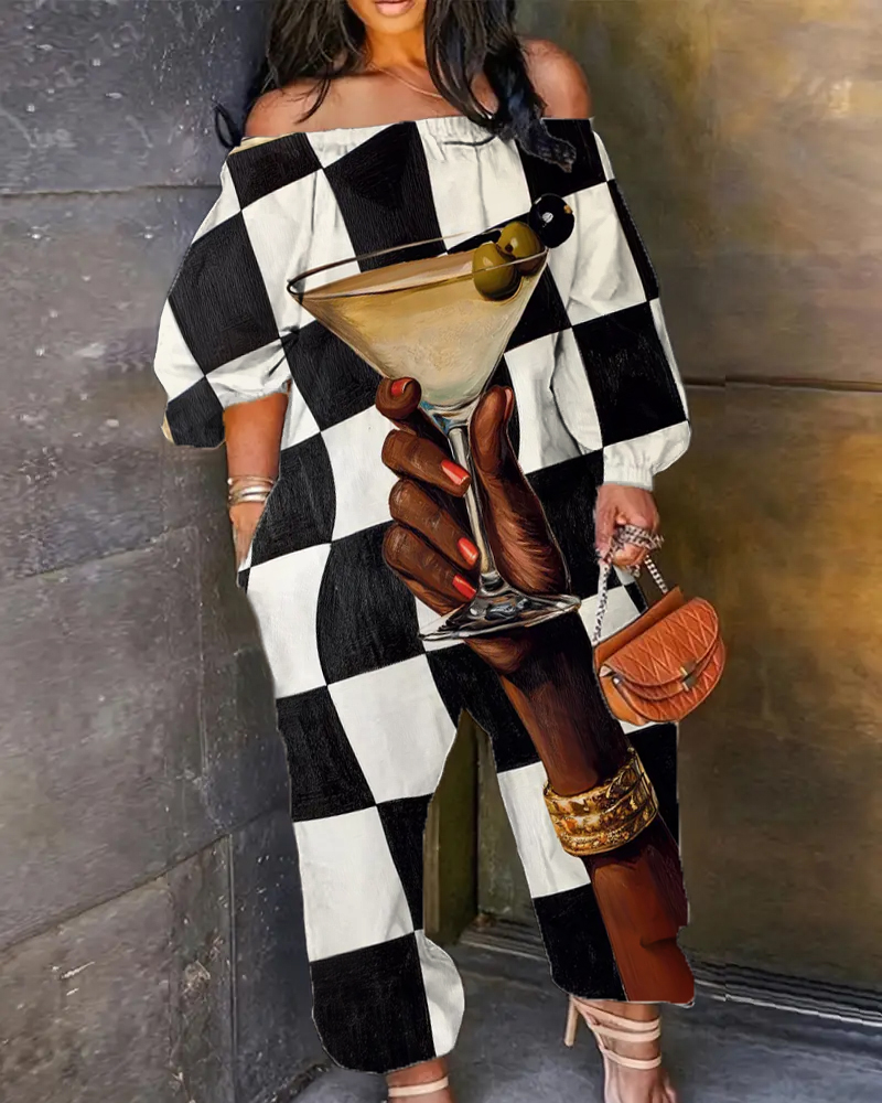 Black Art Plaid Retro One-shoulder Jumpsuit