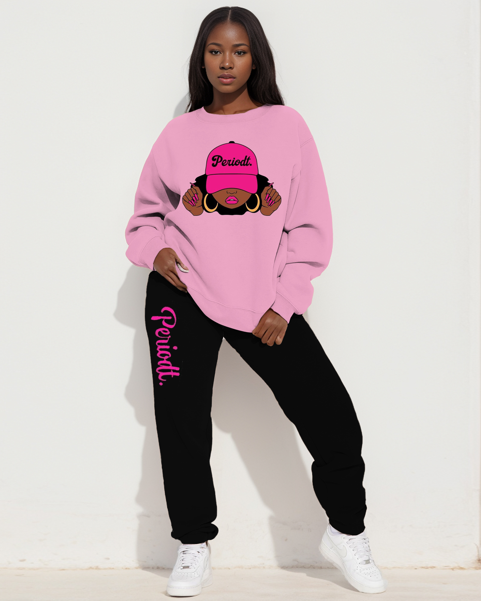 Black Girl Portrait Sweatshirt Two Pieces Set