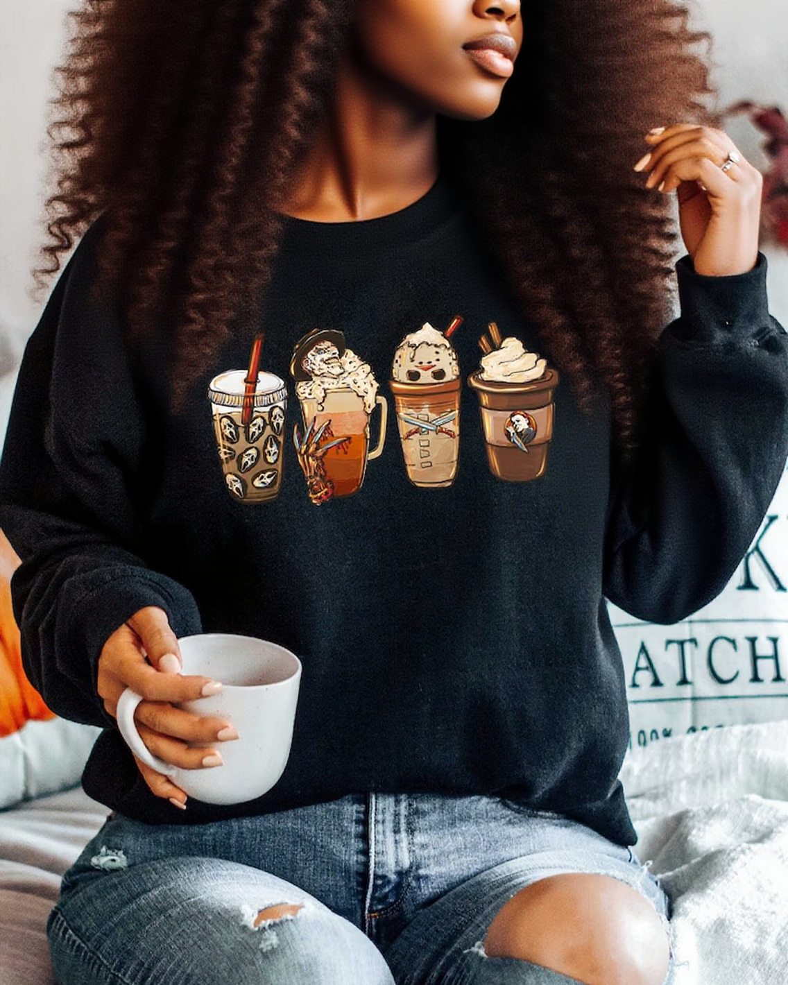 Halloween Horror Coffee Cotton Long Sleeve Sweatshirt