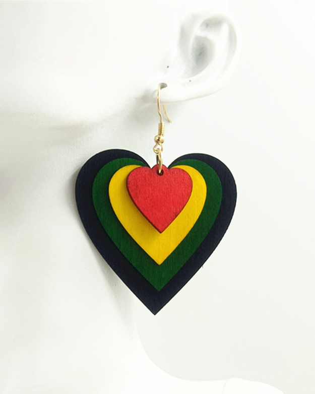 Heart Multicolor Wood Cut Earrings