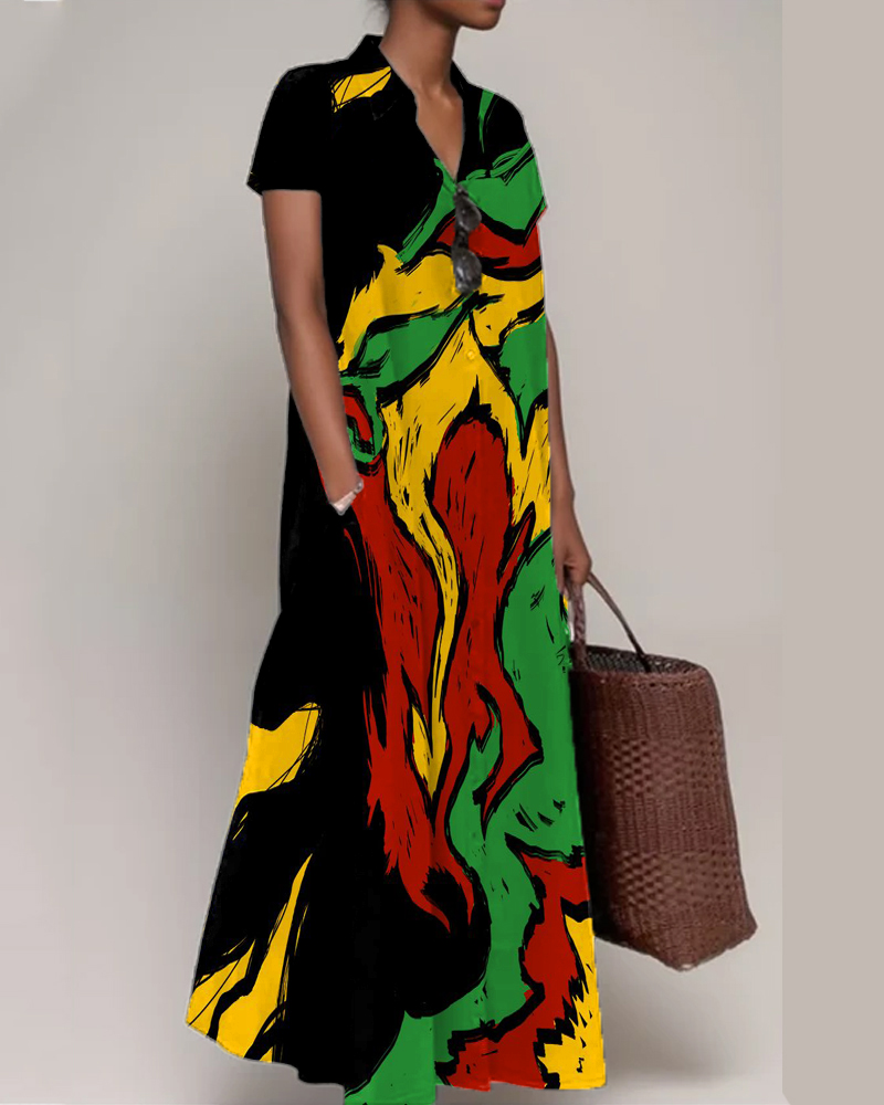 Juneteenth Black Short Sleeve Lapel Maxi Dress