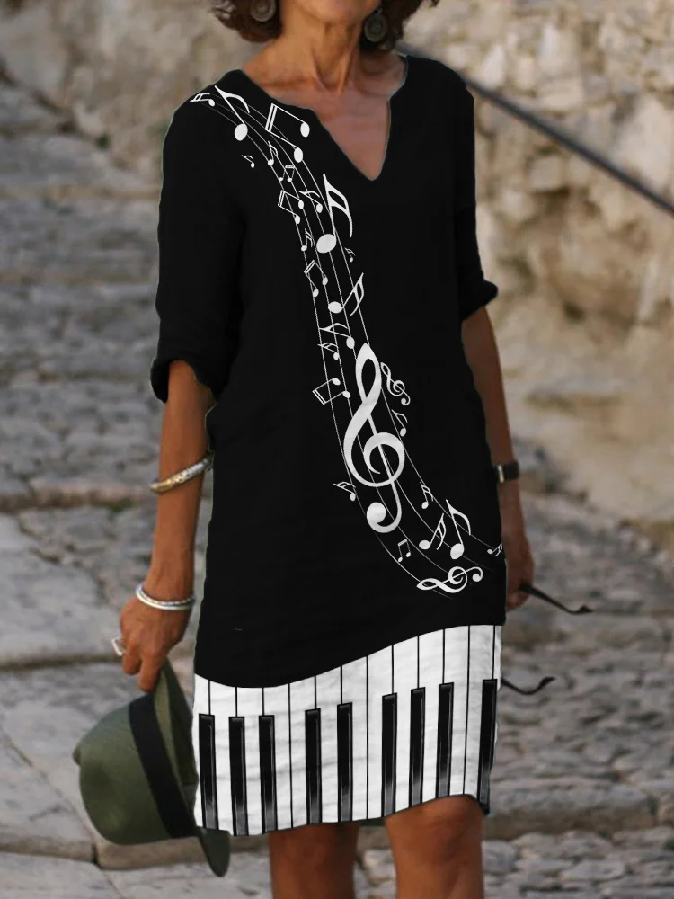 Music Notes Piano Keys Inspired Midi Dress