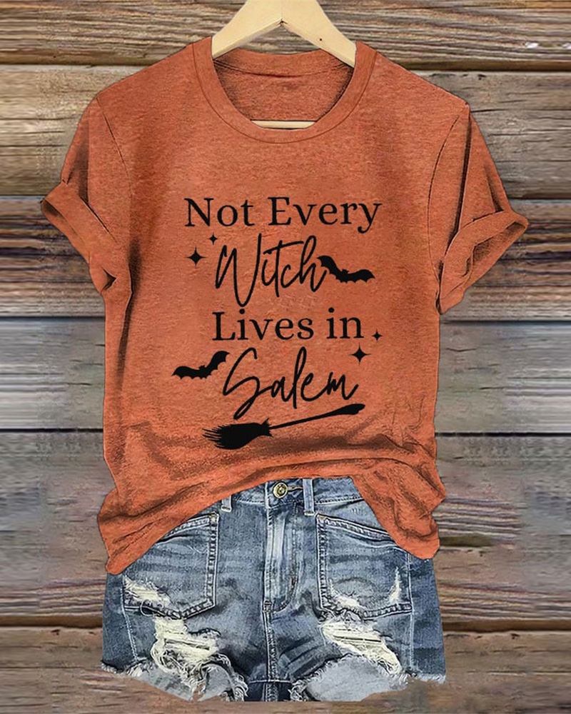 "Not Every Witch Lives in Salem" Round Neck Halloween T-Shirt