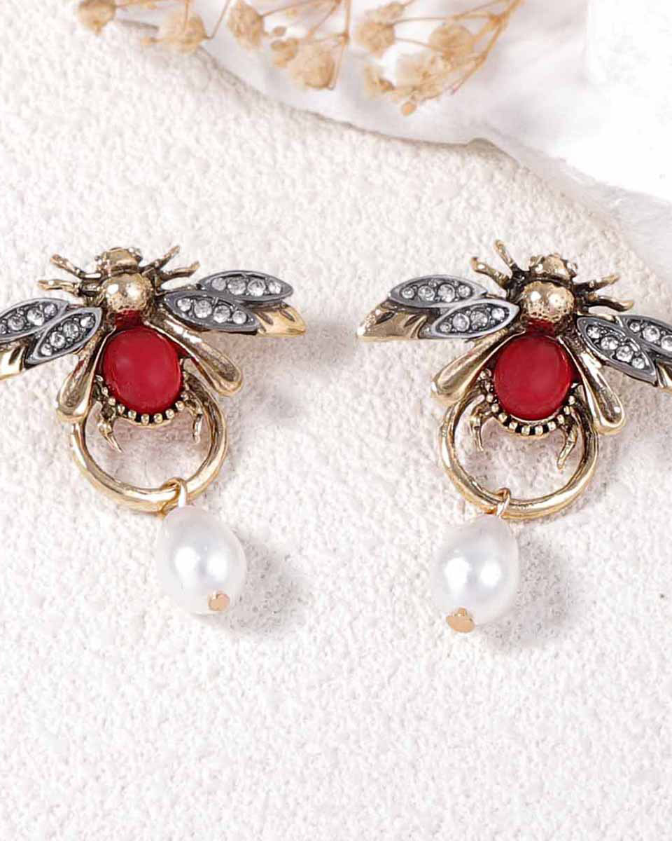 Teardrop Pearl Diamond Bee Earrings