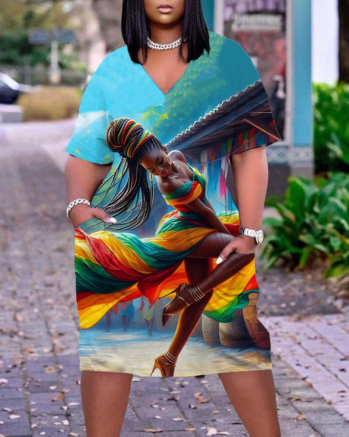 V-neck Reggae Dancing Girl A-line Dress