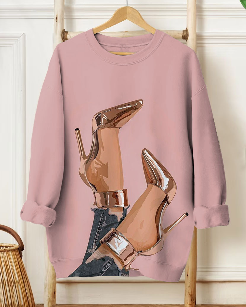 Women's Fashion Casual Shiny Pointed Stiletto Print Long Sleeve Sweatshirt